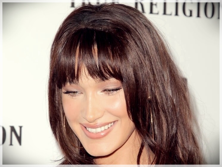 In addition to the many bangs climbed for the winter of 2019 there are also those full and pare. This yoke with long and full bangs is a hairstyle in perfect 90s style created on a dark brown base illuminated by slightly lighter reflections. To have a head like this, you need a nice strong hair and the ability of the hairdresser to keep them in the fold.