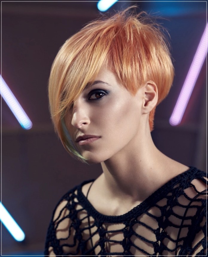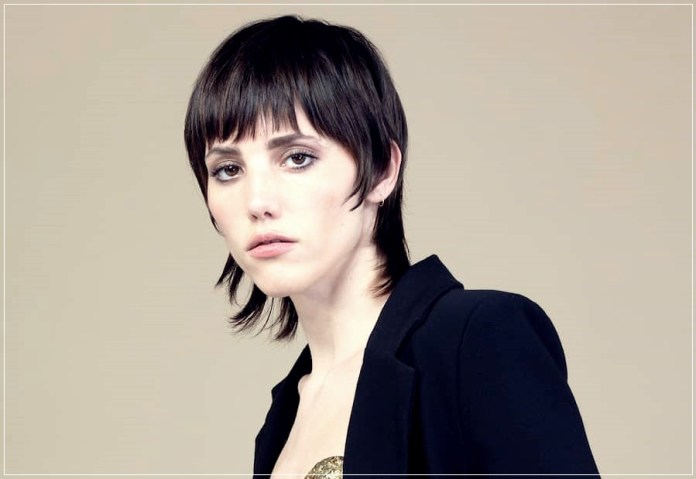 Brilliant chocolate brown and a short eighties cut that combines the pixie with the mullet as well as a wispy fringe with separate tufts, is the proposal by Salvo Filetti.