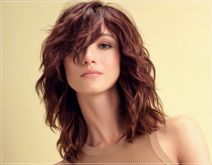 Women with brown hair can afford everything, from light shades to red ones, up to monochromatic color if the cut is done well like this medium scaled and wavy one created by the Hair Stylists of ASH for WELLA.