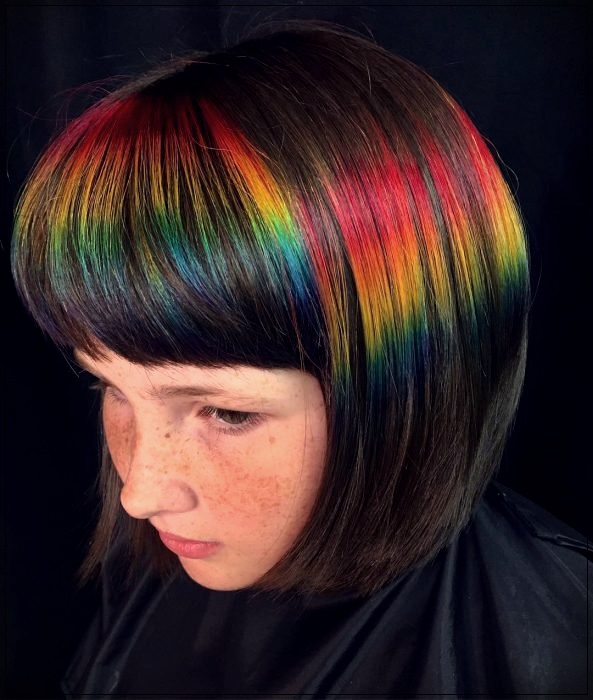 After seeing how small flashes of rainbows formed in her hair due to the reflections of the sun colliding with some crystal, Roxie had the idea of painting small pieces of color in her hair, and now hundreds of girls are following this beautiful trend. This is how the prism effect looks on the hair.