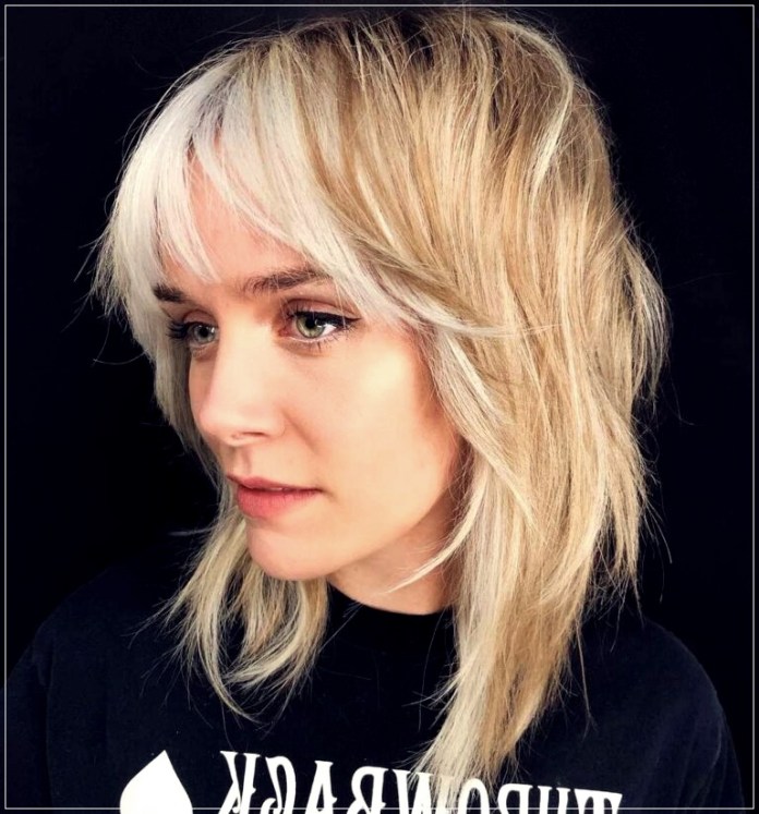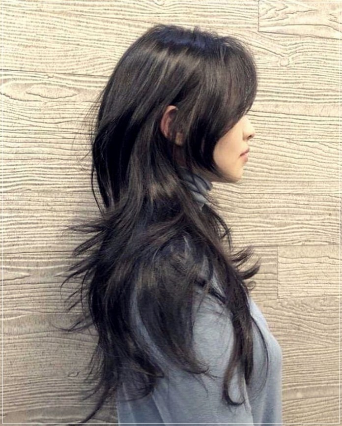 The medium wolf cut consists of cascading multi-layered hair, the layers start at the temples, and the hair gradually fades to the ends. Create a hair with a lot of volume.