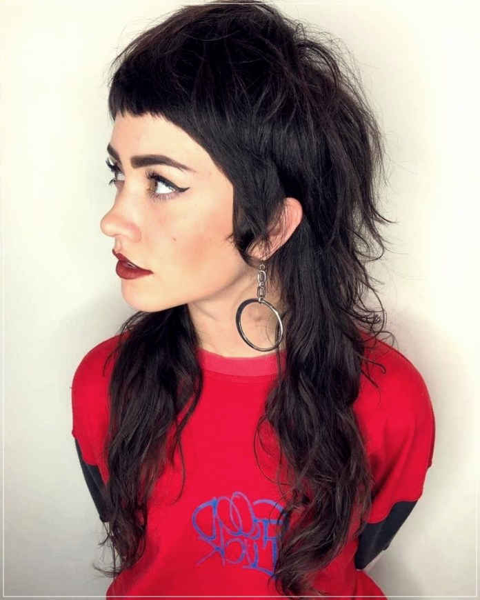 This type of mullet retains the concept of layering hair from high up on the head, with the bottom strands having little volume and being very long compared to the rest of the hair.