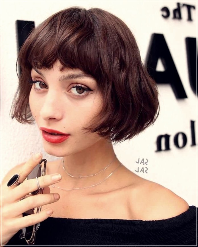 A daring haircut, with straight and short bangs, is a look that is undoubtedly quite risky, but no less beautiful and sexy for that. You can also combine it with modern and striking updos, disheveled, with decorations and even without them.