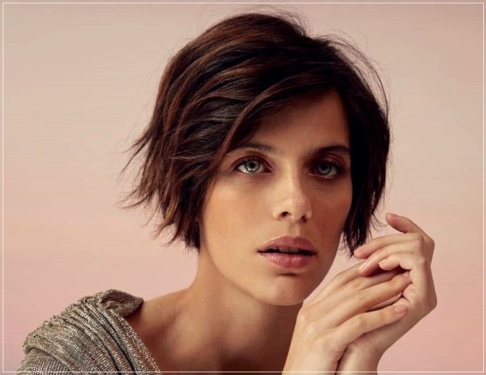 Brilliant chocolate brown and a short eighties cut that combines the pixie with the mullet as well as a wispy fringe with separate tufts, is the proposal by Salvo Filetti.