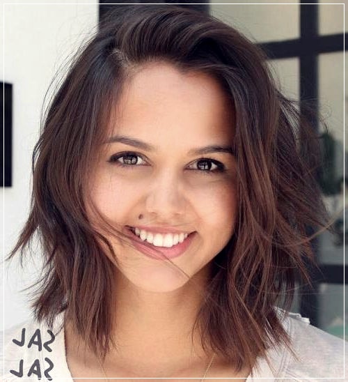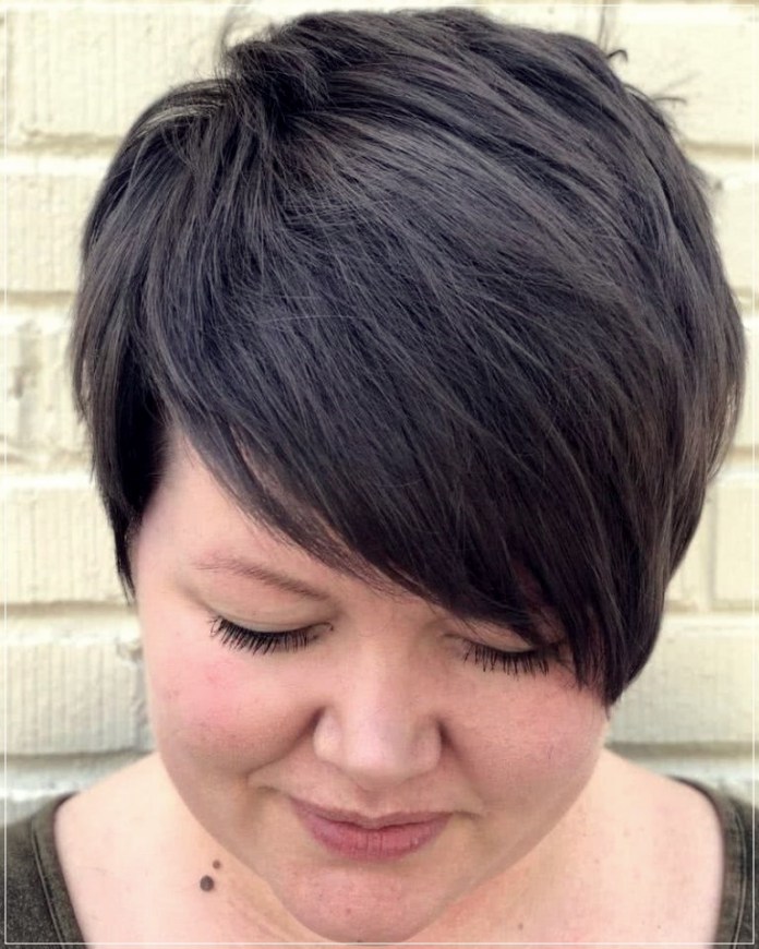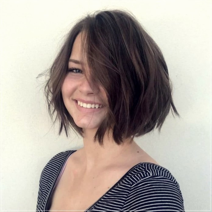 This tousled bob cut is a good style, as hair falling around the face can lengthen it.