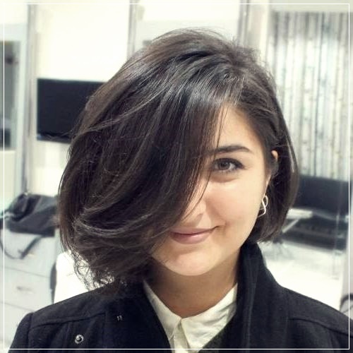 Straight hair is also preferable as it has a slimming effect, ideal for round faces. Short bangs above the eyes should also be avoided, long side bangs are preferable. This cut is ideal, as it gives the face a more square look.