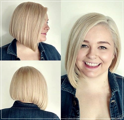 It is important that the face appears more oval. Avoid cuts that are above the chin as this will emphasize the roundness of the face. Ideally, the hair should be at least a length below the chin.