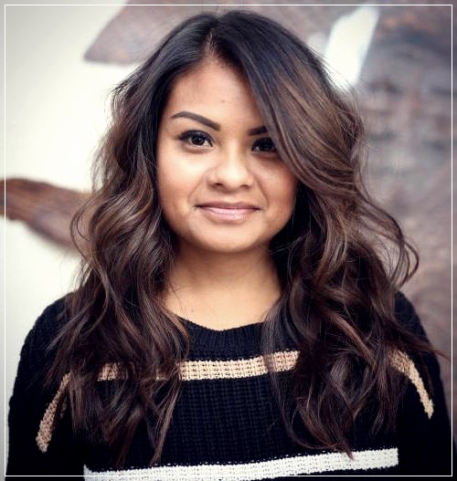 Chin-level curls should also be avoided. When you have curly hair, it is preferable to add volume on the crown rather than on the sides of the face, this will make the face appear longer and more oval. Layers will then help curly hair to flatter a round face.