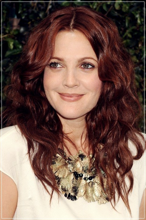 Drew Barrymore creates more defined curls at the bottom of the hair to draw attention to a lower point in the face.