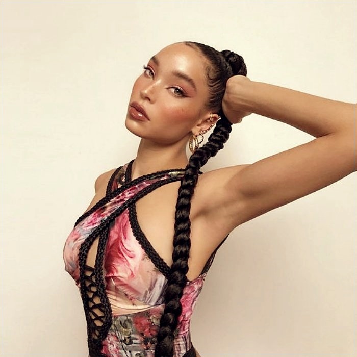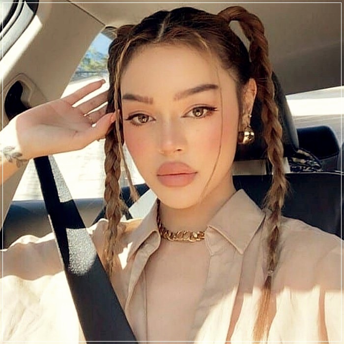 In two high 90s style braids
