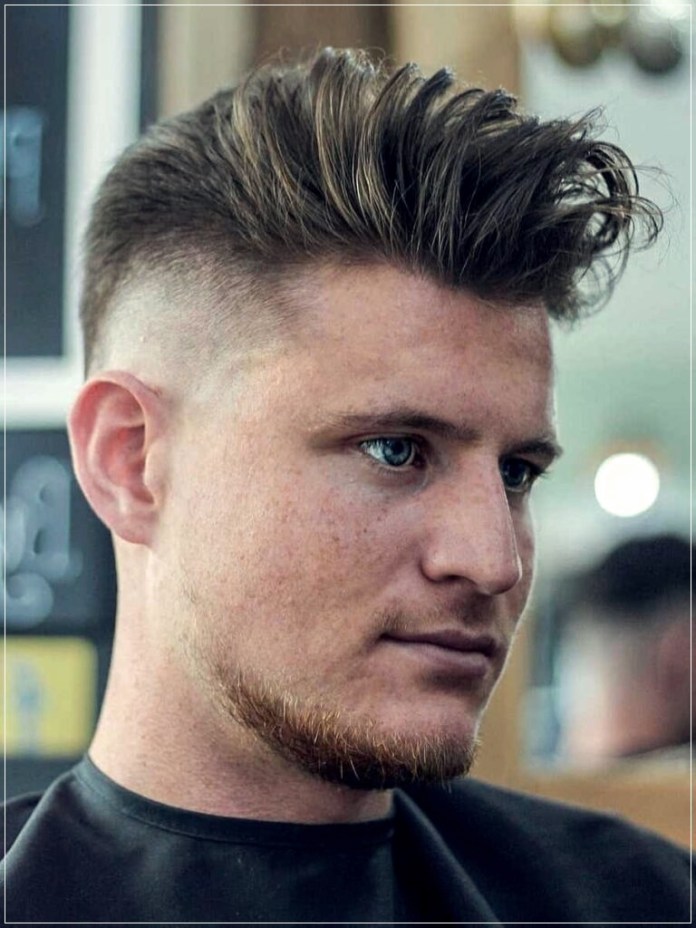 A disconnected quiff is a variation where the top of the hair is separated from the rest of the hair with the help of very short sides. This makes the top hair stand out even more than with the normal pompadour.